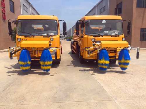 此次服務(wù)安徽高速公路的兩臺(tái)東風(fēng)天錦灑水車,采用工程黃涂裝,用于高速公路的路面重新,以及高速護(hù)欄的清洗使用,同時(shí)我公司生產(chǎn)的東風(fēng)天錦洗掃車也可用于高速路面清理的作用。